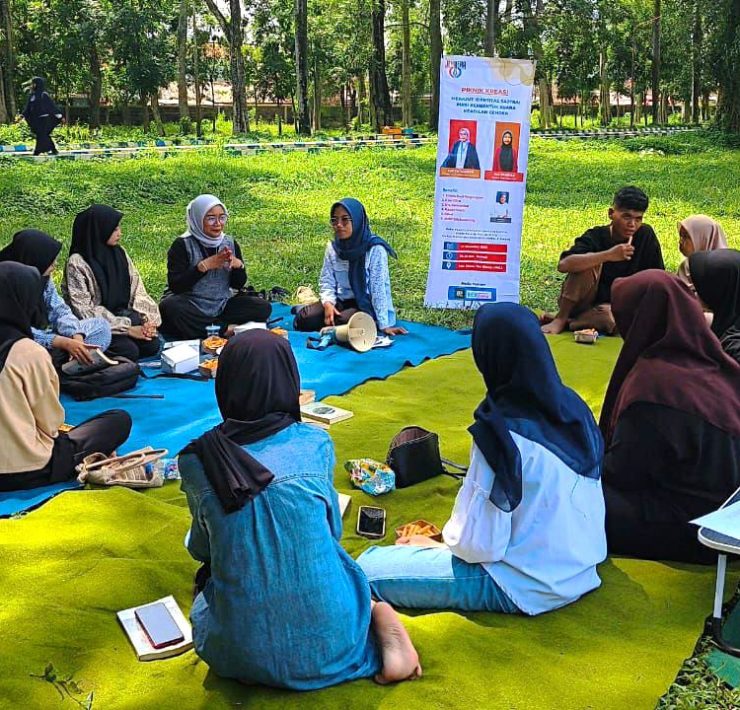 Duduklah aku di depan dara cantik berkerudung biru. Tak ada obrolan terlontar